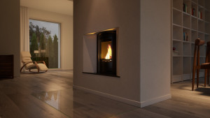 Tento poměr činí krbovou vložku AQUAFLAM 12 PANORAMA ideální pro efektivní vytápění celého domu prostřednictvím radiátorů nebo akumulační nádrže, aniž by nadměrně ohřívala prostor kolem ní.