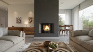 Tento poměr činí krbovou vložku AQUAFLAM 25 PANORAMA ideální pro efektivní vytápění celého domu prostřednictvím radiátorů nebo akumulační nádrže, aniž by nadměrně ohřívala prostor kolem ní.