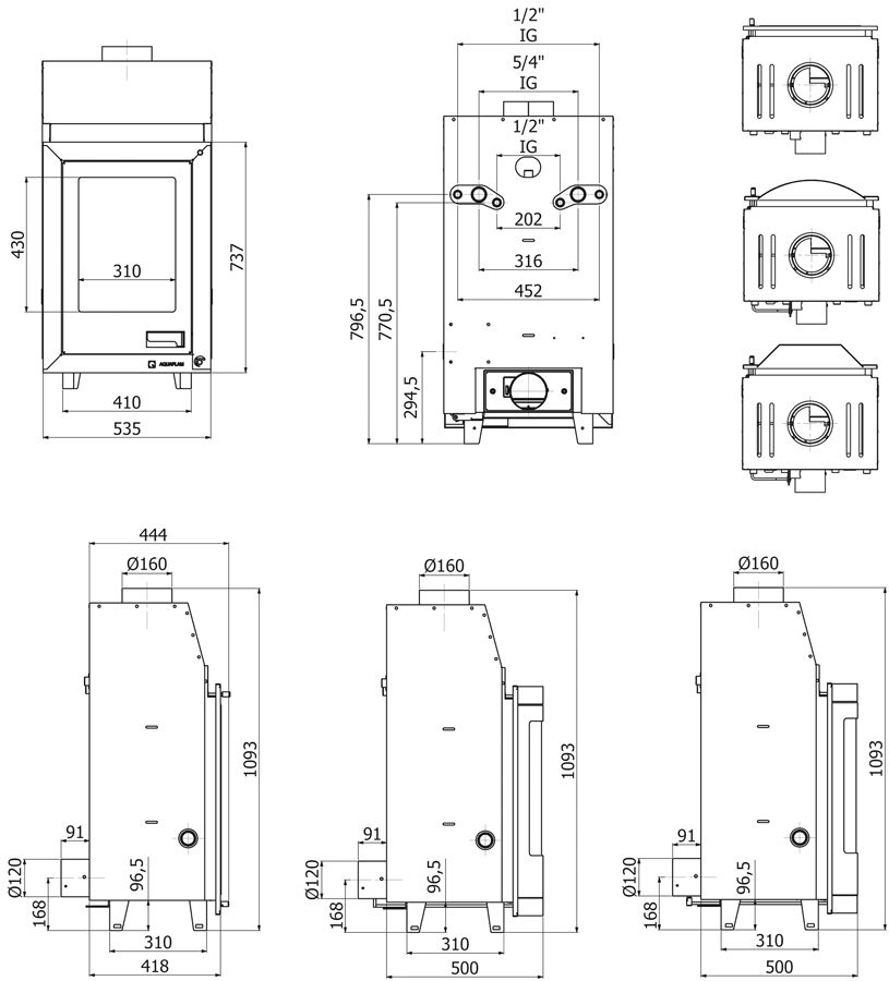 Tento poměr činí krbovou vložku AQUAFLAM PRIZMAT 12 ideální pro efektivní vytápění celého domu prostřednictvím radiátorů nebo akumulační nádrže, aniž by nadměrně ohřívala prostor kolem ní.