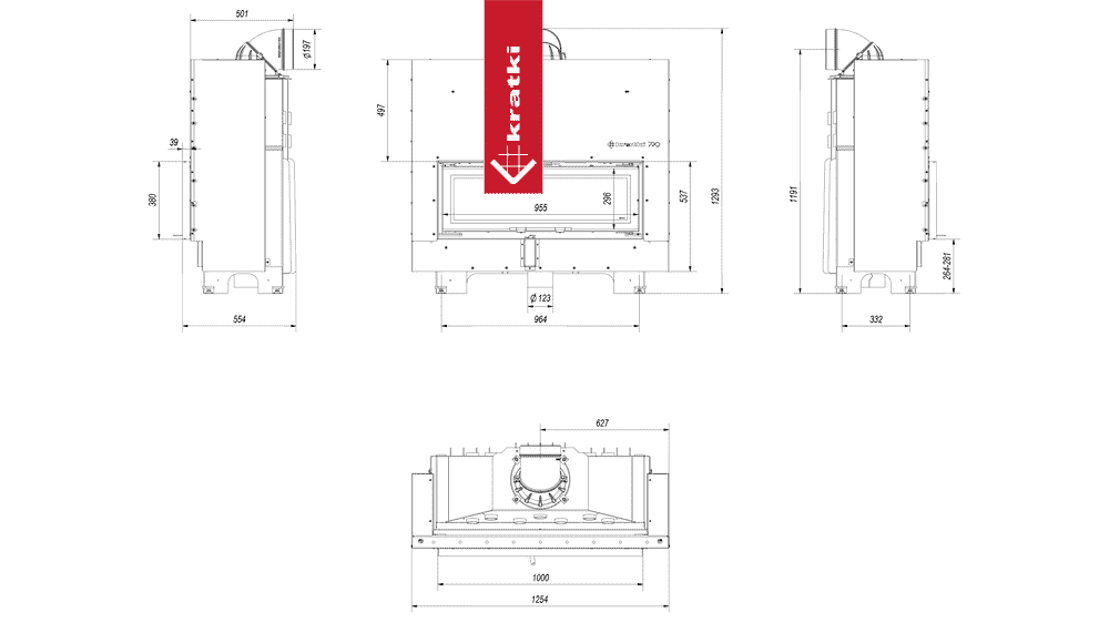 ÚvodKrby a krbová kamnaKrbové vložkyKrbová vložka z oceli KRATKI MB 100 14 kW Ø 200 zvedací dveře černá