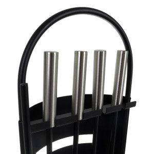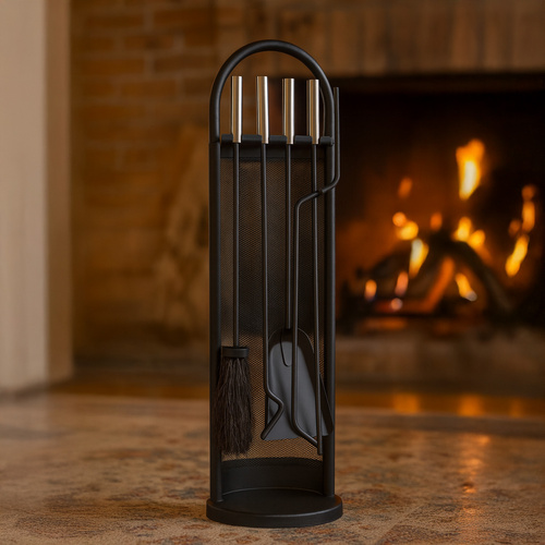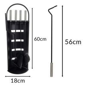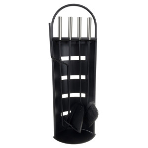 Dotaz na produktSada 5 v 1 – sada obsahuje všechny potřebné prvky pro údržbu krbů a jiných typů ohňů: kleště, lopatu,koště a pohrabáč , díky čemuž je sada všestranná. To vše se vejde na přiložený stojan .