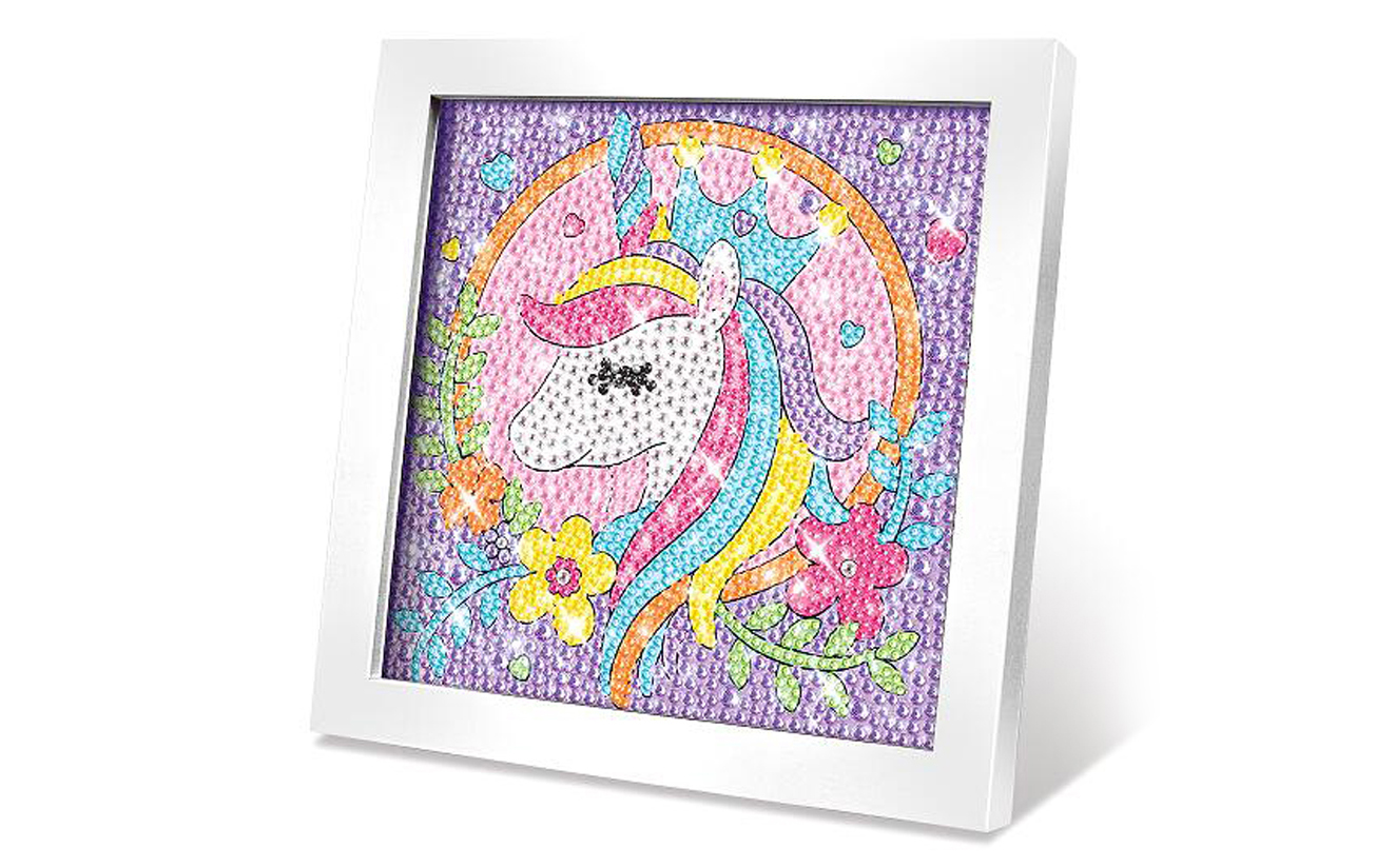 Dotaz na produktKreativní set obraz s kamínky jednorožec. Velikost 17,5x17,5x1,5cm. Obsahuje misku na kamínky, pero na nabírání a umísťování kamínků, kamínky různých barev, vosk, rámeček. Postup: z obrázku sloupněte folii, špičku přiloženého pera přiložte na vosk, perem naberte kamínek, umístěte ho na obraz.