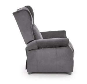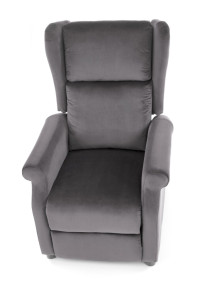 Masážní relaxační křeslo je potaženo látkou. Moderní křeslo slouží k relaxaci a pohodlnému oddychu.