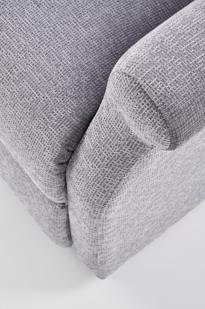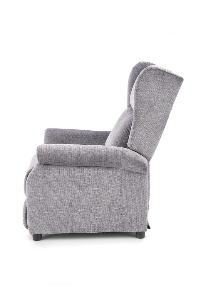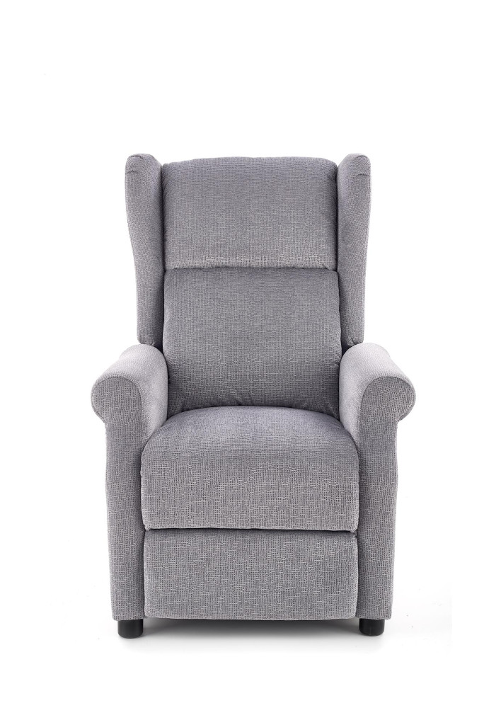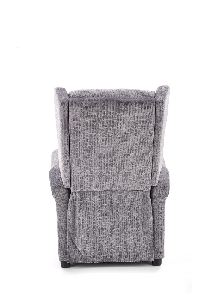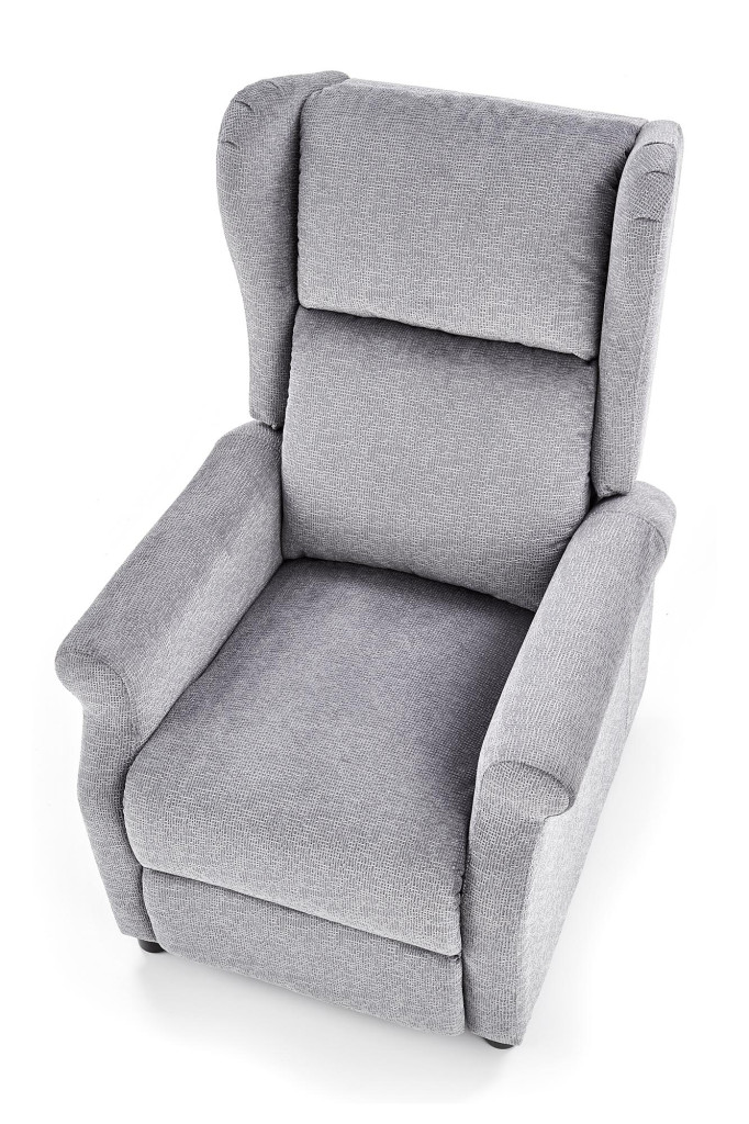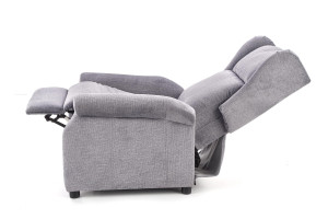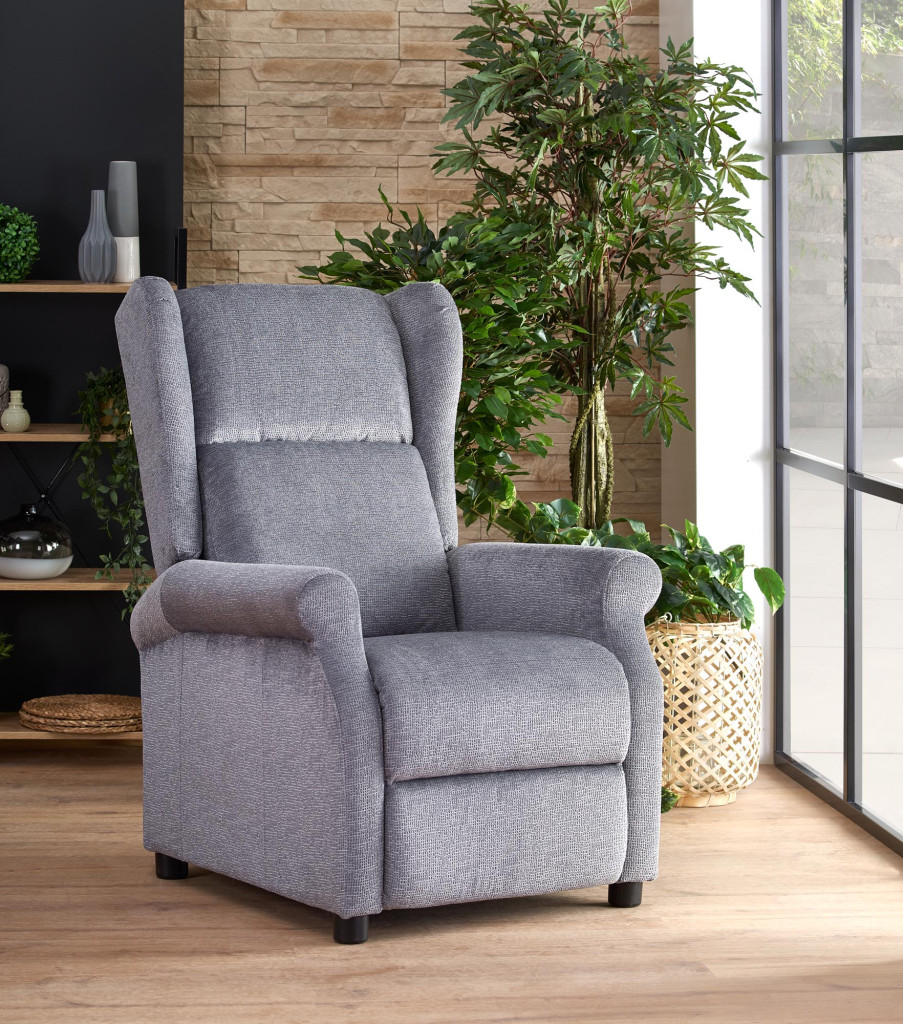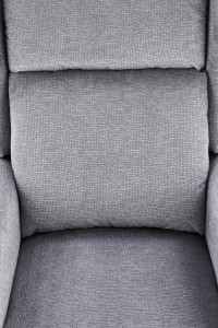 Masážní relaxační křeslo je potaženo látkou. Moderní křeslo slouží k relaxaci a pohodlnému oddychu.