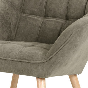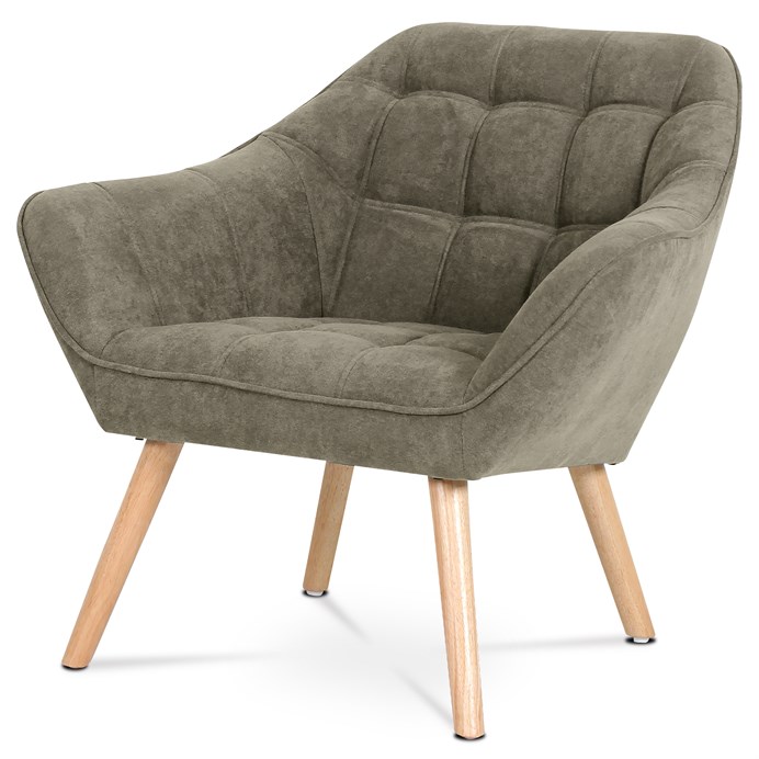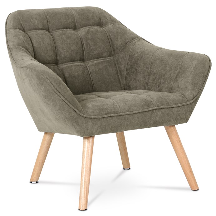 Křeslo s lanýžovým látkovým potahem a masivními nohami z kaučukovníku nabízí pevné a stabilní sezení s důrazem na design. Potah je příjemný na dotek a díky designovému prošití vytváří zajímavý vizuální efekt, který podtrhuje moderní styl křesla. Masivní dřevěné nohy zajišťují pevnou oporu a dlouhou životnost, přičemž jejich přírodní béžová barva přináší do interiéru teplý a přirozený prvek. Ergonomicky tvarované opěradlo a sedák poskytují pohodlí pro relaxaci v obývacím pokoji či pracovně. Křeslo není rozkládací, jeho rozměry a pevná konstrukce jsou navrženy pro každodenní komfortní užívání.