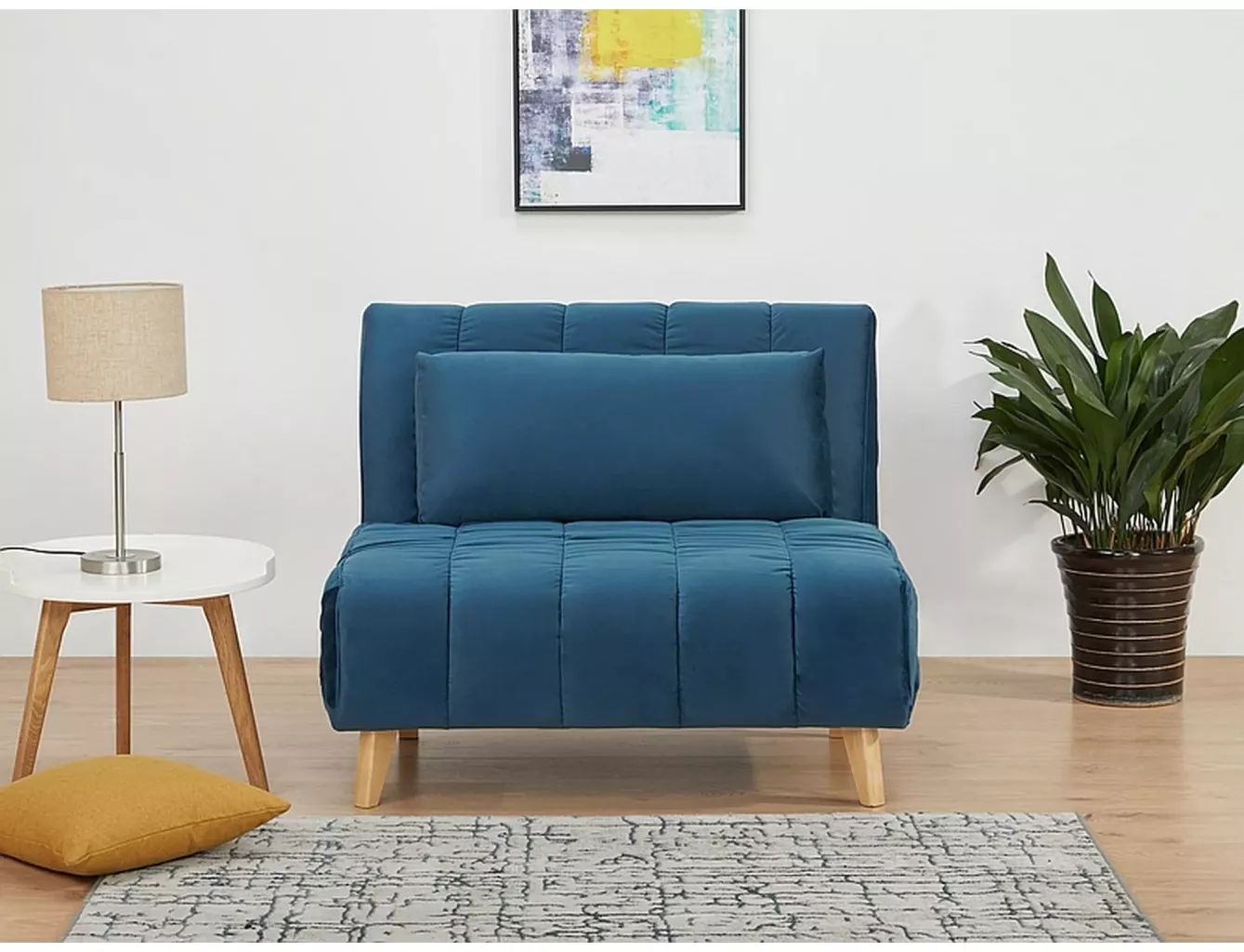 rozkládací křeslo, barva: tmavě modrá, up. 188 / dřevo, barva: buk
