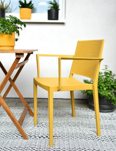 Dotaz na produkt Na splátky ještě dnesJednoduché, elegantní a zároveň praktické křeslo, které disponuje pevnou konstrukcí, která je vyrobena ze 100% recyklovaného materiálu. Tento materiál je odolný vůči UV záření. Křeslo lze využít jak v interiéru, tak i v exteriéru. Konstrukce křesla je nejen lehká, ale zároveň i velmi pevná díky použití kompozitního materiálu vyztuženého skelnými vlákny. Součástí křesla jsou i pohodlné područky. S nosností až 150 kg je vhodné jak pro domácnosti, tak i pro komerční účely např. do restaurací či konferenčních sálů. Křeslo umožňuje také stohování, díky čemuž jich můžete uskladnit mnoho na malém prostoru.