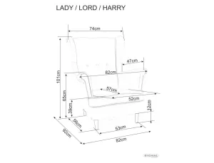 Rozměry křesla: A - 101, B - 82, C - 39, D - 57, E - 92, F - 12 cm