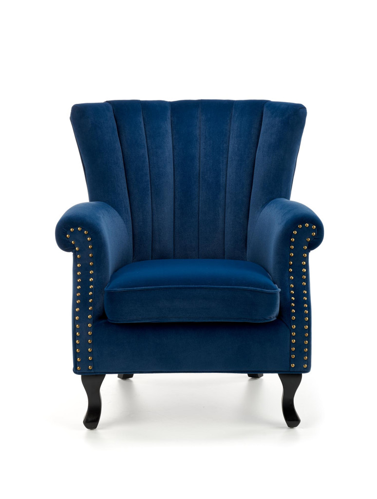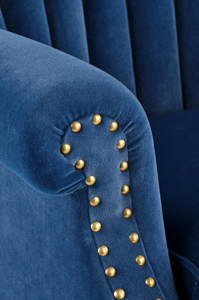 Relaxační křeslo je potaženo látkou. Moderní křeslo slouží k relaxaci a pohodlnému oddychu.