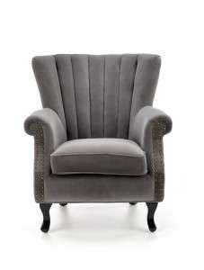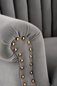 Relaxační křeslo je potaženo látkou. Moderní křeslo slouží k relaxaci a pohodlnému oddychu.