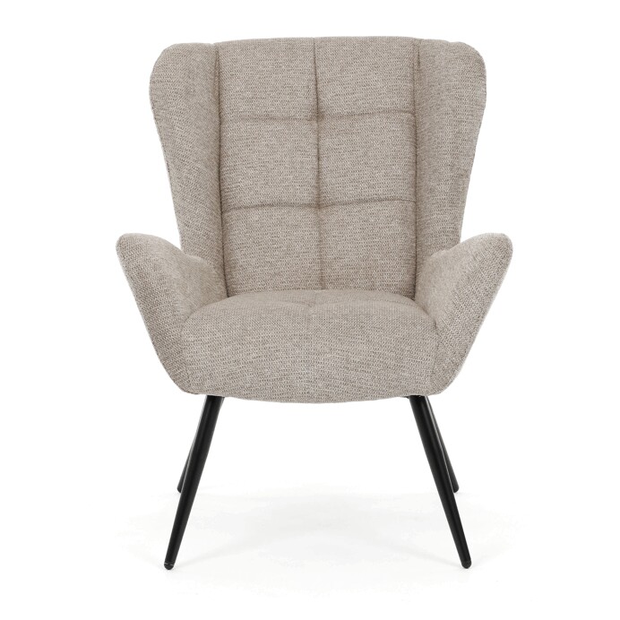 Křeslo ušák v barvě coffee nabízí komfortní posezení díky vysokému polstrování sedáku i opěradla, které je potažené prémiovou látkou příjemnou na dotek. Pevné kovové nohy v matné černé barvě zajišťují stabilitu a dlouhou životnost, zatímco integrované područky přispívají k pohodlí při sezení. Design křesla kombinuje klasický tvar ušáku s moderním minimalistickým provedením, což umožňuje jeho snadné začlenění do různých interiérů. Díky kvalitnímu materiálu a ergonomickému tvaru je vhodné pro relaxaci i každodenní použití.