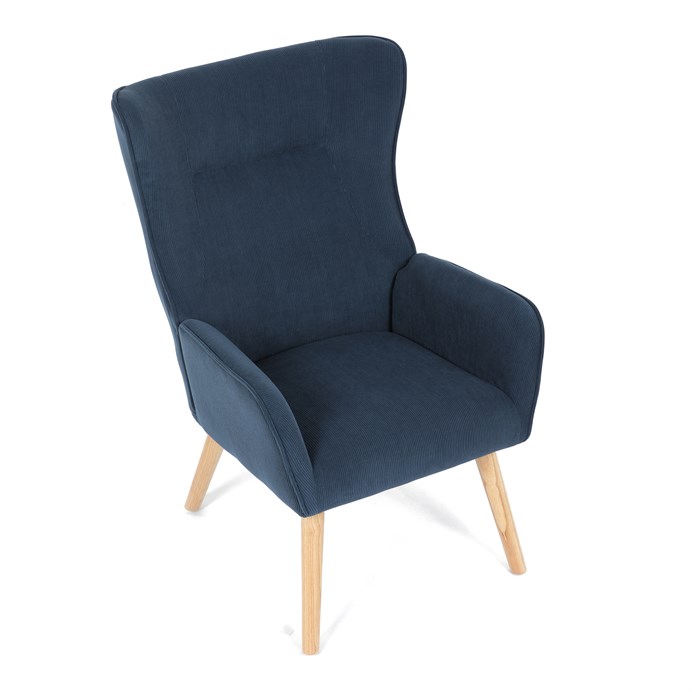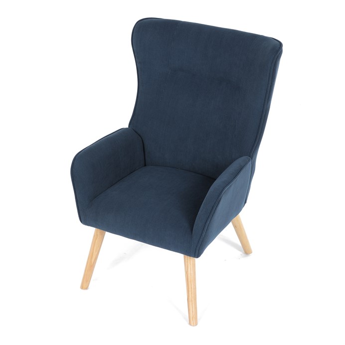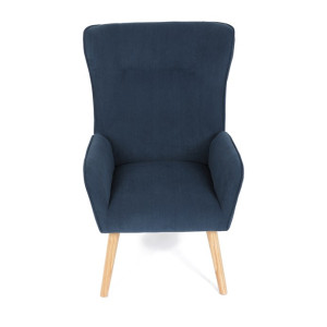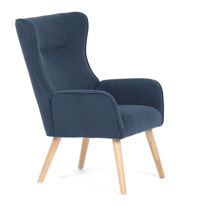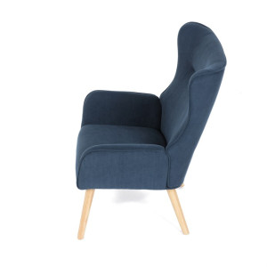 Dotaz na produkt Na splátky ještě dnesKřeslo typu ušák s potahem z modré manšestrové látky nabízí pohodlné sezení s výrazným vizuálním efektem díky jemné textuře manšestru. Sedák a opěradlo jsou vyplněné měkkou výplní, která zajišťuje komfort při delším posezení. Masivní nohy z kaučukovníku poskytují stabilní a pevnou oporu, přičemž jejich přírodní odstín kontrastuje s tmavě modrým potahem. Ergonomický tvar opěradla s mírně zvýšenými bočnicemi podporuje správnou polohu těla. Křeslo je určeno pro interiéry, kde vynikne jeho kombinace tradičního stylu a kvalitního materiálového provedení.