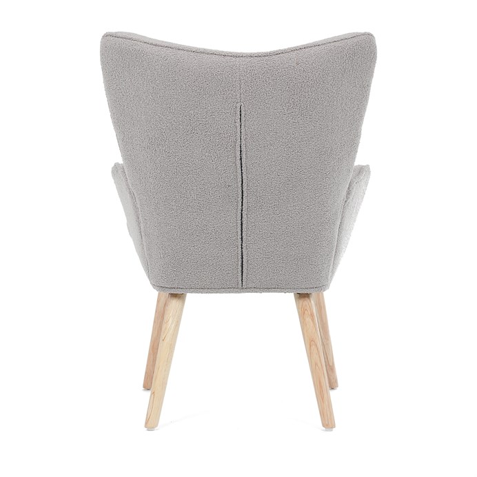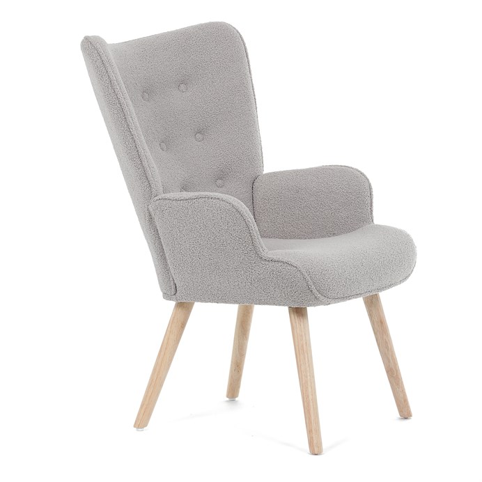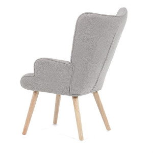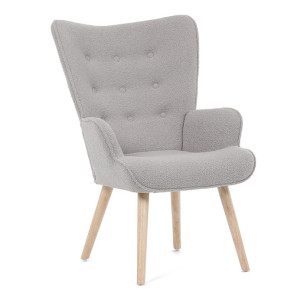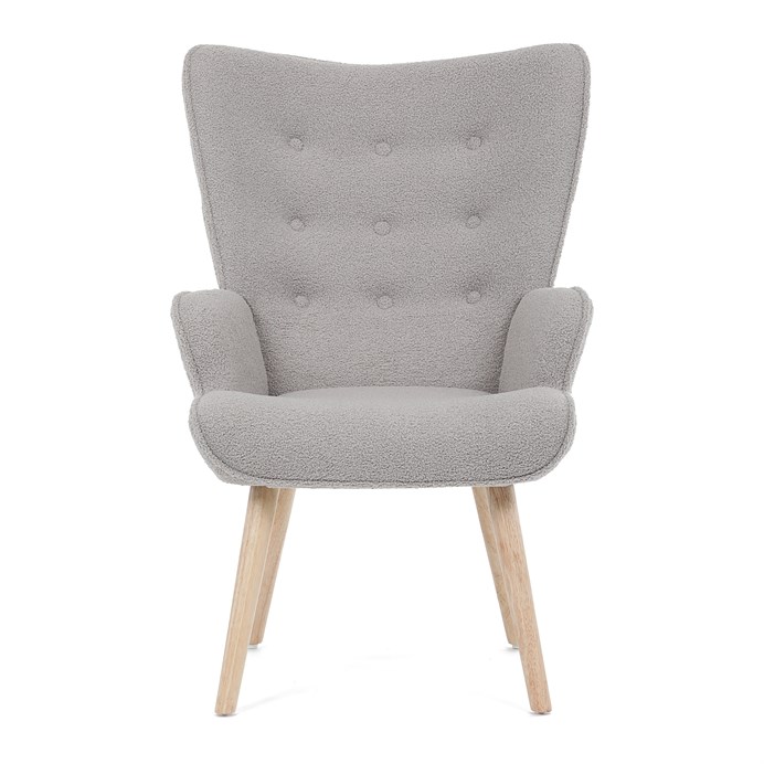 Zkrášlete svůj obývací pokoj nebo pracovnu tímto křeslem, které v sobě kombinuje šedou barvu a přírodní masivní nohy. Potah křesla je vyroben z látky bouclé s jemným povrchem. Pěnová výplň křesla Vám poskytne opravdový komfort.