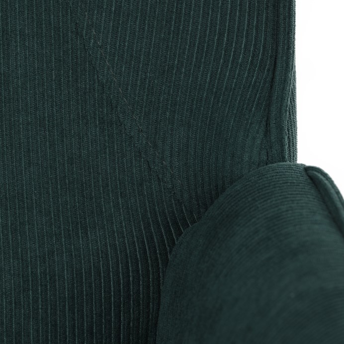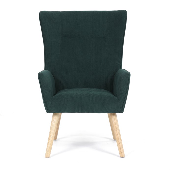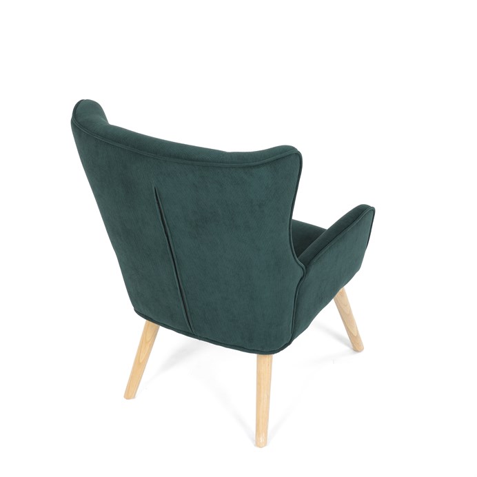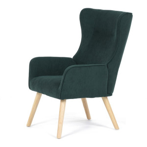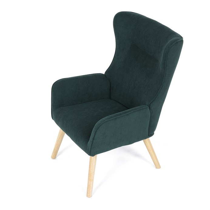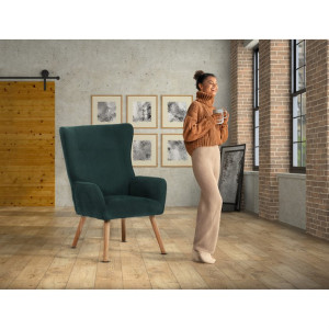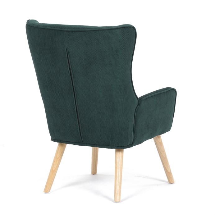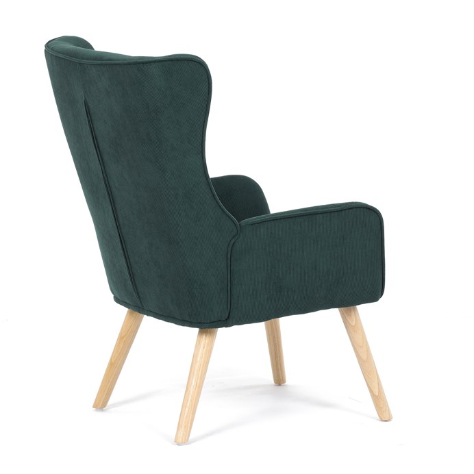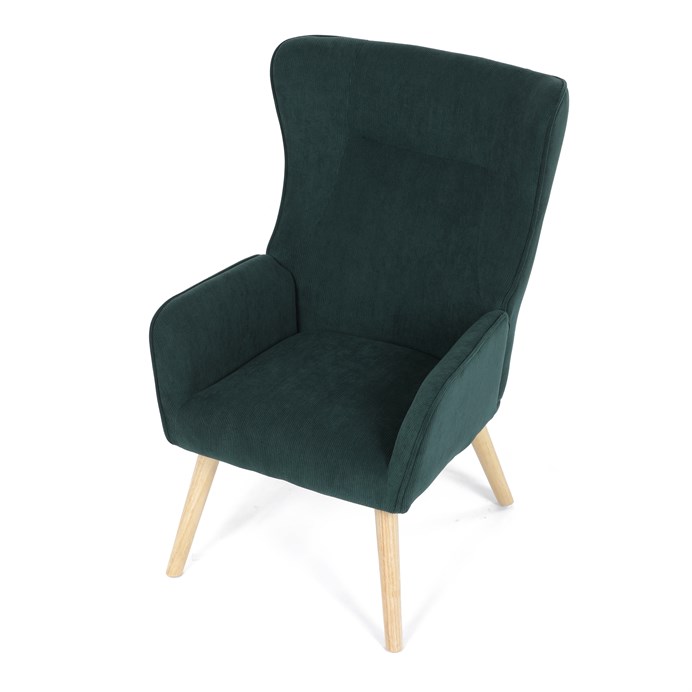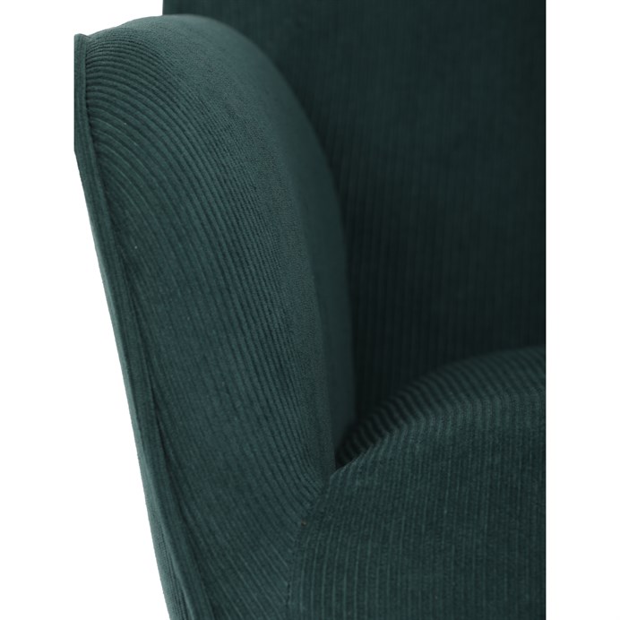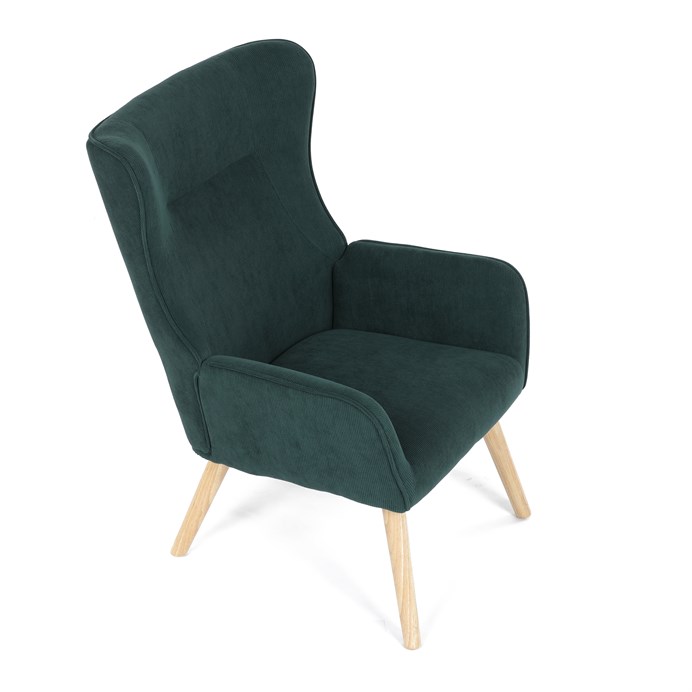 Dotaz na produkt Na splátky ještě dnesKřeslo v designu ušáka je potaženo zelenou manšestrovou látkou, která nabízí příjemnou texturu a decentní lesk. Masivní nohy z kaučukovníku zajišťují stabilitu a pevnost, přičemž jejich přírodní odstín kontrastuje s tmavším odstínem potahu. Ergonomicky tvarované opěradlo s výraznými křídly poskytuje oporu hlavy a ramenům, zatímco čalouněné područky doplňují komfort při sezení. Díky kvalitnímu materiálu a pevnému provedení je křeslo vhodné pro dlouhodobé užívání v obývacích pokojích či čtecích koutech.