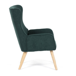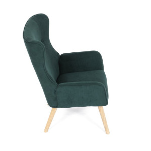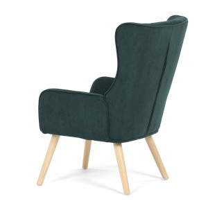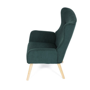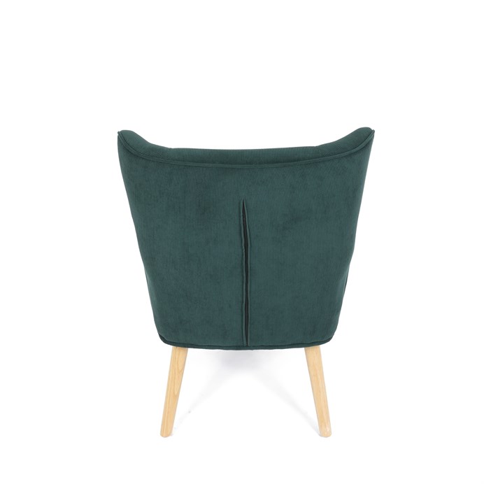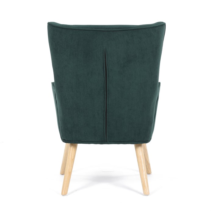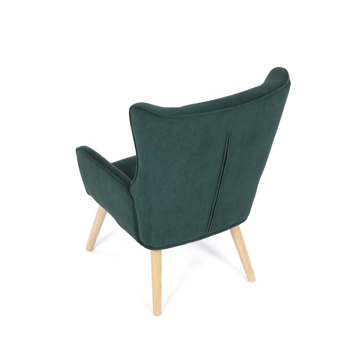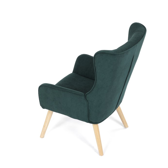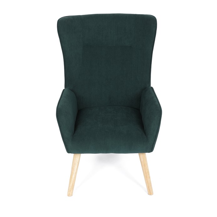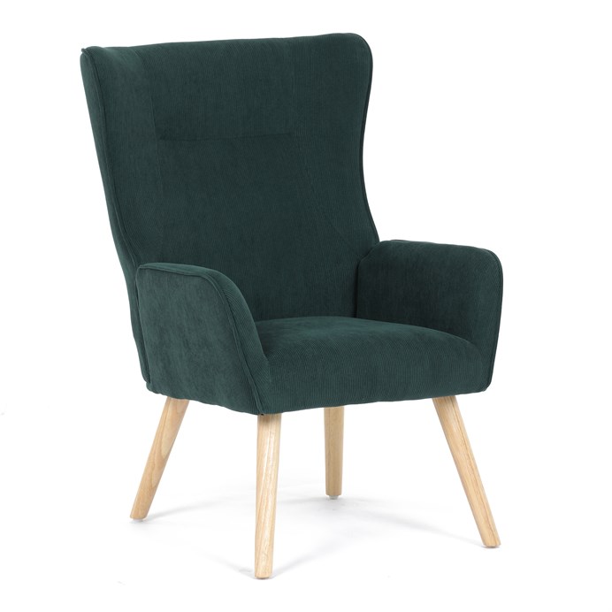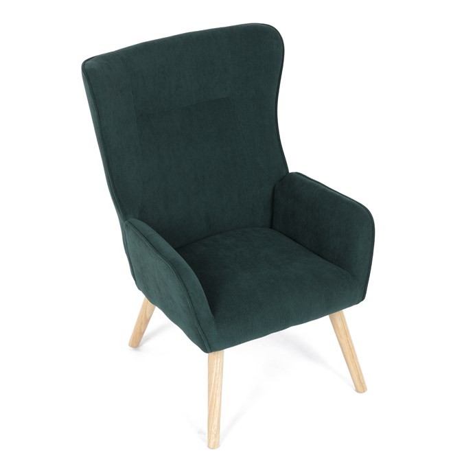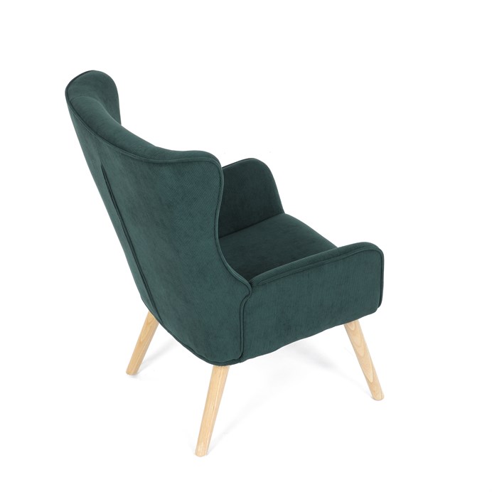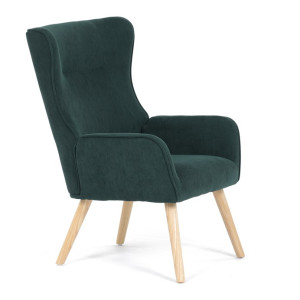 Dotaz na produkt Na splátky ještě dnesKřeslo v designu ušáka je potaženo zelenou manšestrovou látkou, která nabízí příjemnou texturu a decentní lesk. Masivní nohy z kaučukovníku zajišťují stabilitu a pevnost, přičemž jejich přírodní odstín kontrastuje s tmavším odstínem potahu. Ergonomicky tvarované opěradlo s výraznými křídly poskytuje oporu hlavy a ramenům, zatímco čalouněné područky doplňují komfort při sezení. Díky kvalitnímu materiálu a pevnému provedení je křeslo vhodné pro dlouhodobé užívání v obývacích pokojích či čtecích koutech.