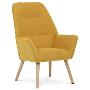 Křeslo je vyrobeno z kvalitních materiálů. Potah z hladké látky v hořčicově žluté barvě je příjemný na dotek a odolný proti zašpinění. S nosností až 130 kg je toto křeslo dostatečně pevné i pro větší osoby.