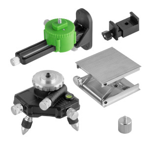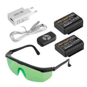 Laser lze napájet z akumulátorů (2× 3,7 V / 4000 mAh) nebo přímo ze sítě, což poskytuje maximální flexibilitu. Součástí výbavy je také dálkové ovládání, magnetický nástěnný držák, ochranné pouzdro, laserové brýle a napájecí adaptér. Druhý spodní paprsek usnadňuje přesné horizontální měření blízko podlahy.