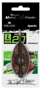Tato praktická sada obsahuje tři feederová krmítka MIKADO Aperio o hmotnosti 15 g a plnící formu. Díky chytré konstrukci se zkosenou stěnou, integrovaným podavačem háčku a ochranou vlasce poskytují krmítka výbornou stabilitu, efektivní prezentaci nástrahy a snadné plnění – s formou i bez ní.