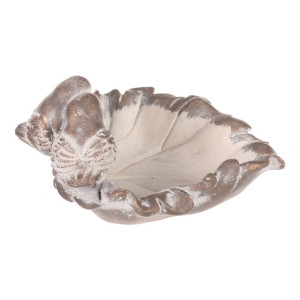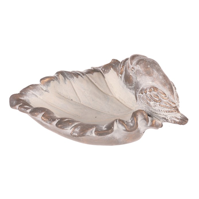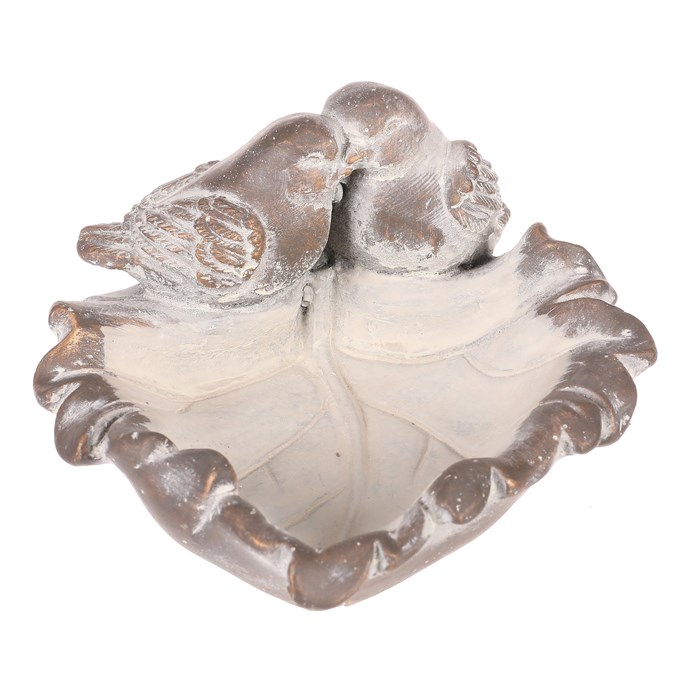 Dotaz na produktToto šedé betonové pítko ve tvaru listu, zdobené dvěma drobnými ptáčky na okraji, přináší do pietních prostor a zahrad klidnou a harmonickou atmosféru. Odolný materiál a decentní vzhled z něj dělají praktickou i dekorativní ozdobu, která poskytne ptáčkům místo k osvěžení.