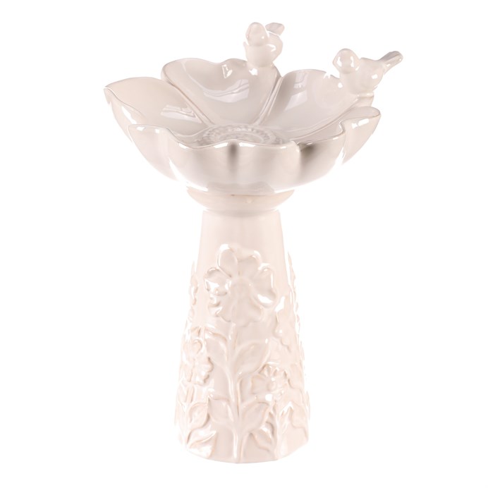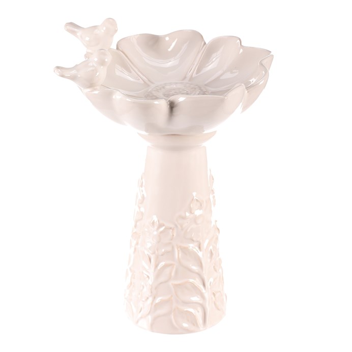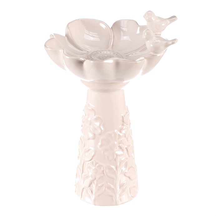 Dotaz na produkt Na splátky ještě dnesBílé keramické pítko pro ptáčky, ve tvaru květu na vysoké noze, je vznešenou zahradní dekorací, která přitahuje pozornost a přináší radost nejen ptáčkům, ale i lidem. Tvar velkého květu se dvěma pěvci, kteří se na něm natrvalo usadili, přidává do vašeho prostoru dokonalé oživení. Robustní keramická noha, kterou můžete snadno ukotvit pomocí otvoru na dně, je vysoce praktická a podtrhuje celkovou eleganci produktu. Takové pítko rozhodně bude dělat radost nejen vám, ale nadchne i vaše návštěvníky včetně všech kolemjdoucích, kteří se na chvíli zastaví, aby si užili jeho krásu.