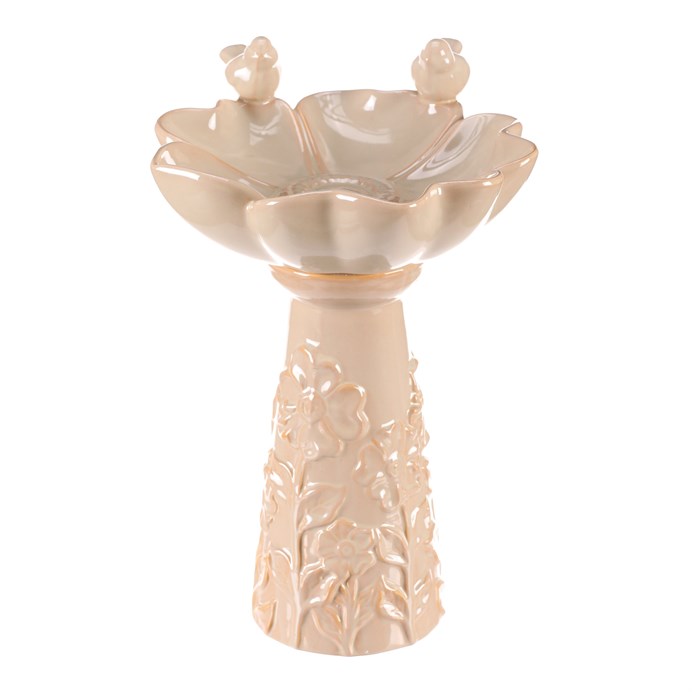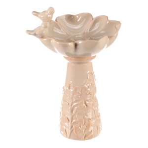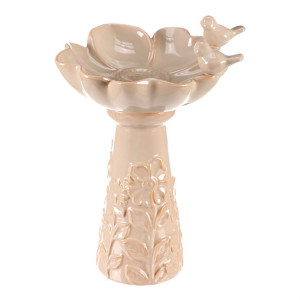 Dotaz na produkt Na splátky ještě dnesKrémově zbarvené keramické pítko pro ptáčky, ve tvaru květu na vysoké noze, je vznešenou zahradní dekorací, která přitahuje pozornost a přináší radost nejen ptáčkům, ale i lidem. Tvar velkého květu se dvěma pěvci, kteří se na něm natrvalo usadili, přidává do vašeho prostoru dokonalé oživení. Robustní keramická noha, kterou můžete snadno ukotvit pomocí otvoru na dně, je vysoce praktická a podtrhuje celkovou eleganci produktu. Takové pítko rozhodně bude dělat radost nejen vám, ale nadchne i vaše návštěvníky včetně všech kolemjdoucích, kteří se na chvíli zastaví, aby si užili jeho krásu.