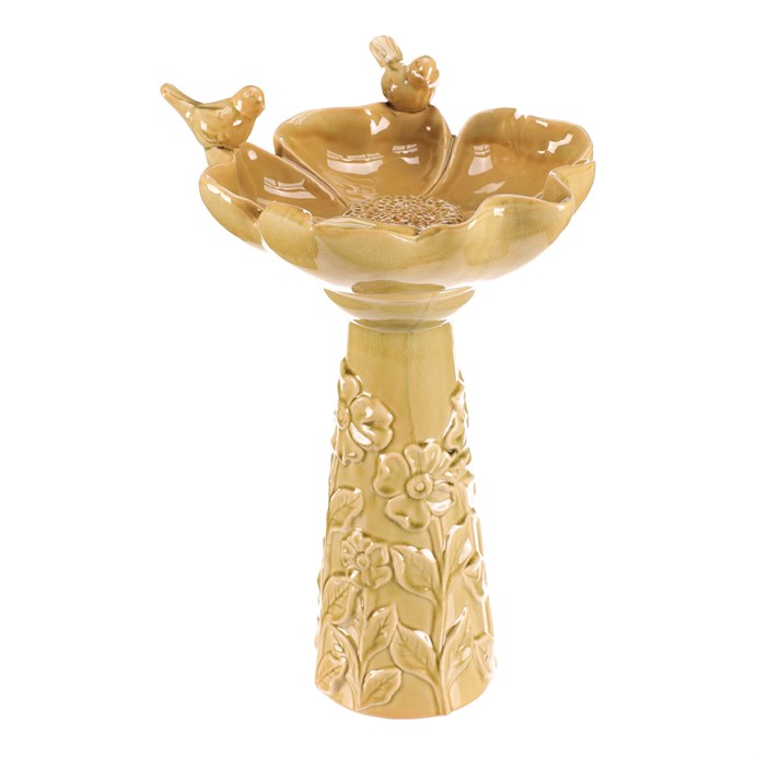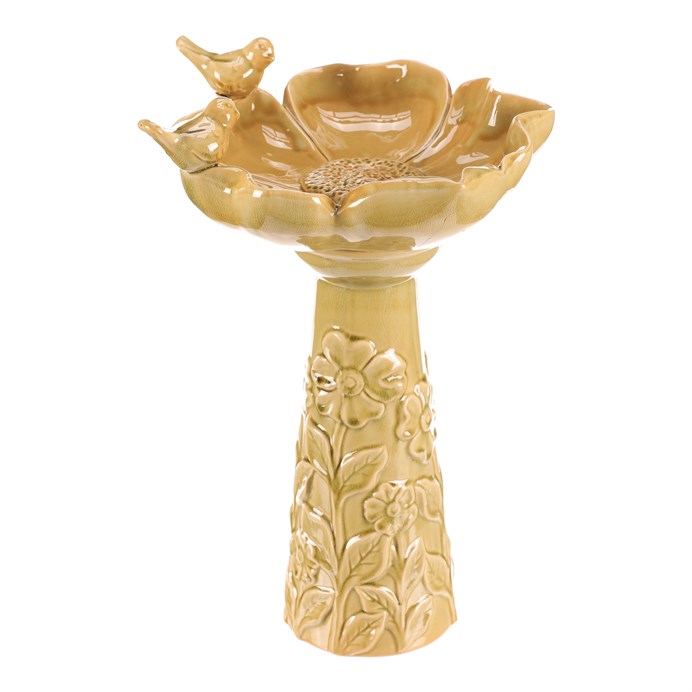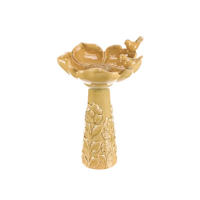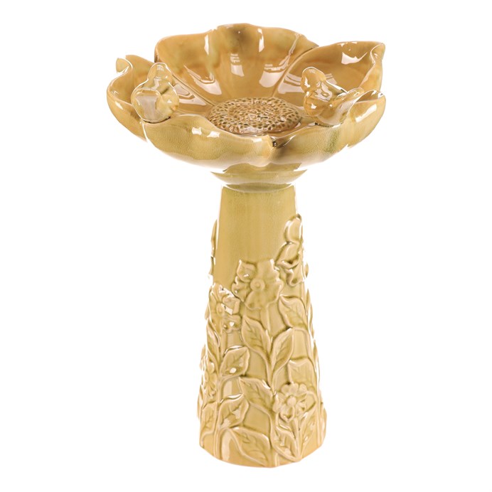 Dotaz na produkt Na splátky ještě dnesSvětle zeleně zbarvené keramické pítko pro ptáčky, ve tvaru květu na vysoké noze, je vznešenou zahradní dekorací, která přitahuje pozornost a přináší radost nejen ptáčkům, ale i lidem. Tvar velkého květu se dvěma pěvci, kteří se na něm natrvalo usadili, přidává do vašeho prostoru dokonalé oživení. Robustní keramická noha, kterou můžete snadno ukotvit pomocí otvoru na dně, je vysoce praktická a podtrhuje celkovou eleganci produktu. Takové pítko rozhodně bude dělat radost nejen vám, ale nadchne i vaše návštěvníky včetně všech kolemjdoucích, kteří se na chvíli zastaví, aby si užili jeho krásu.