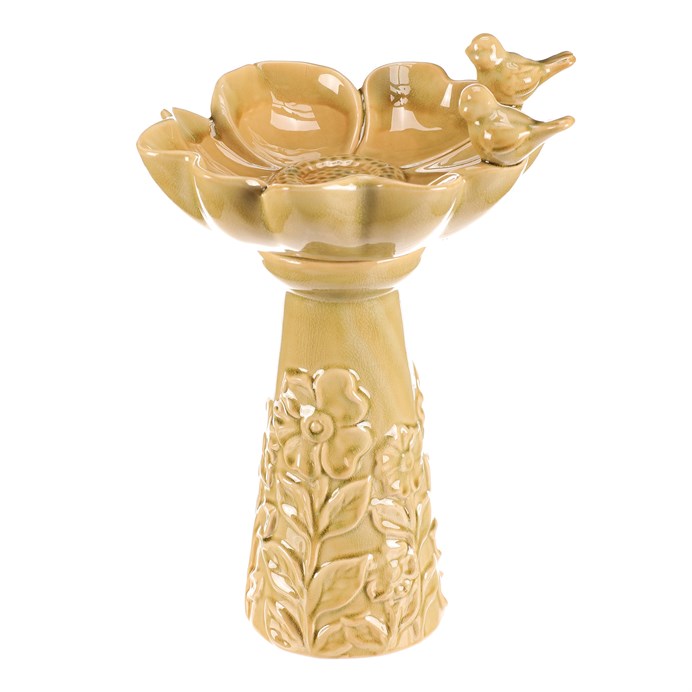 Dotaz na produkt Na splátky ještě dnesSvětle zeleně zbarvené keramické pítko pro ptáčky, ve tvaru květu na vysoké noze, je vznešenou zahradní dekorací, která přitahuje pozornost a přináší radost nejen ptáčkům, ale i lidem. Tvar velkého květu se dvěma pěvci, kteří se na něm natrvalo usadili, přidává do vašeho prostoru dokonalé oživení. Robustní keramická noha, kterou můžete snadno ukotvit pomocí otvoru na dně, je vysoce praktická a podtrhuje celkovou eleganci produktu. Takové pítko rozhodně bude dělat radost nejen vám, ale nadchne i vaše návštěvníky včetně všech kolemjdoucích, kteří se na chvíli zastaví, aby si užili jeho krásu.