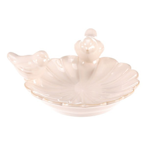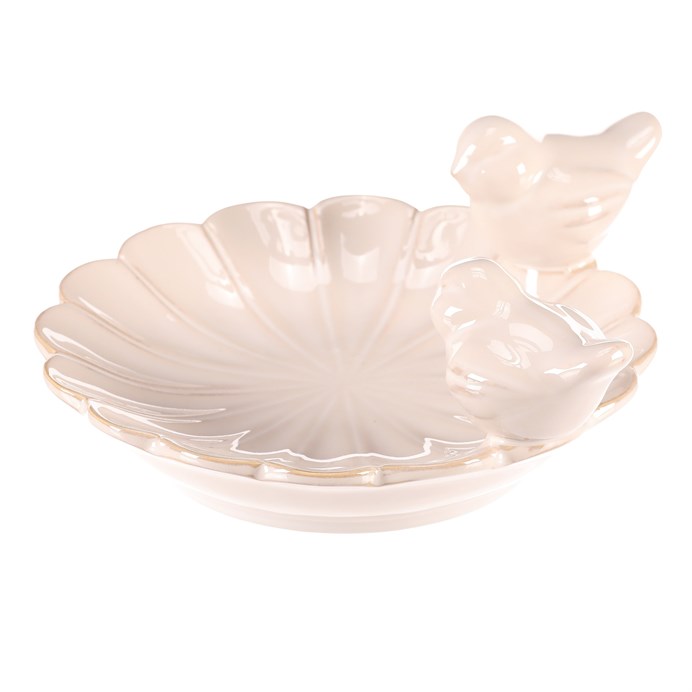 Dotaz na produkt Na splátky ještě dnesČistě bílé keramické pítko pro ptáčky ve tvaru pravidelného květu je nádhernou dekorací, která přitahuje pozornost nejen ptáčků, ale i všech kolemjdoucích a návštěvníků. Dva pěvci sedící na okraji pítka dodávají celému pítku hravý a veselý vzhled. Příjemně oživí vaši zahradu a stane se oblíbeným místem pro vaše opeřené návštěvníky, kteří se k vám tak budou rádi vracet.