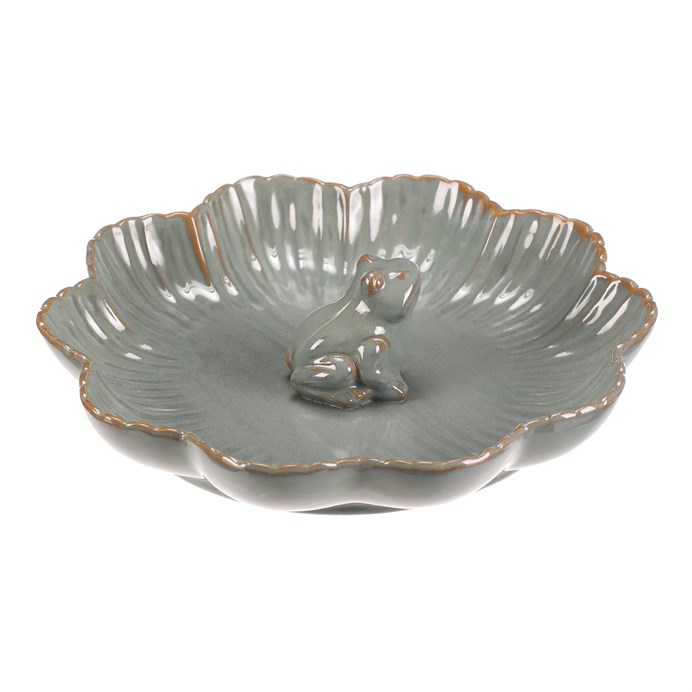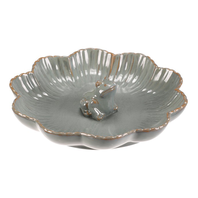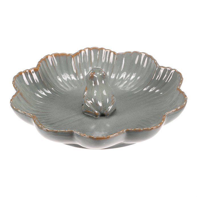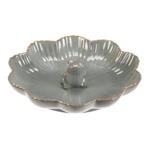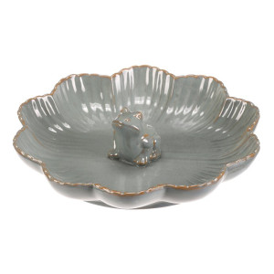 Dotaz na produktKeramické krmítko a pítko ve tvaru květu v mentolové zelené barvě zaujme svým jemným leskem a detailním zpracováním. V jeho středu sedí malá keramická žabka, která dodává výrobku hravý a dekorativní prvek. Povrch je hladký a snadno udržovatelný, ideální pro venkovní i vnitřní použití. Díky tvaru květu poskytuje dostatečný prostor pro vodu nebo krmivo, což ocení ptáci i drobní živočichové. Výška a šířka výrobku jsou přizpůsobeny tak, aby byl stabilní a bezpečný při umístění na zahradě či balkóně.
