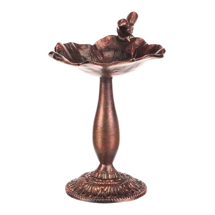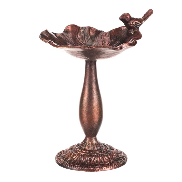 Dotaz na produktToto kovové pítko pro ptáčky v měděné barvě je nejen praktické, ale jedná se také o krásné zahradní doplnění. Miska na podstavci je zdobena malým pěvcem, který dodává pítku jemný detail. Stabilita této dekorace je zajištěna její hmotností a těžištěm ve spodní části. Perfektní pro umístění na zahradu, terasu, případně balkón, kde svým provedením bude dělat radost vám i všem ptáčkům, kteří na zahradu zavítají.