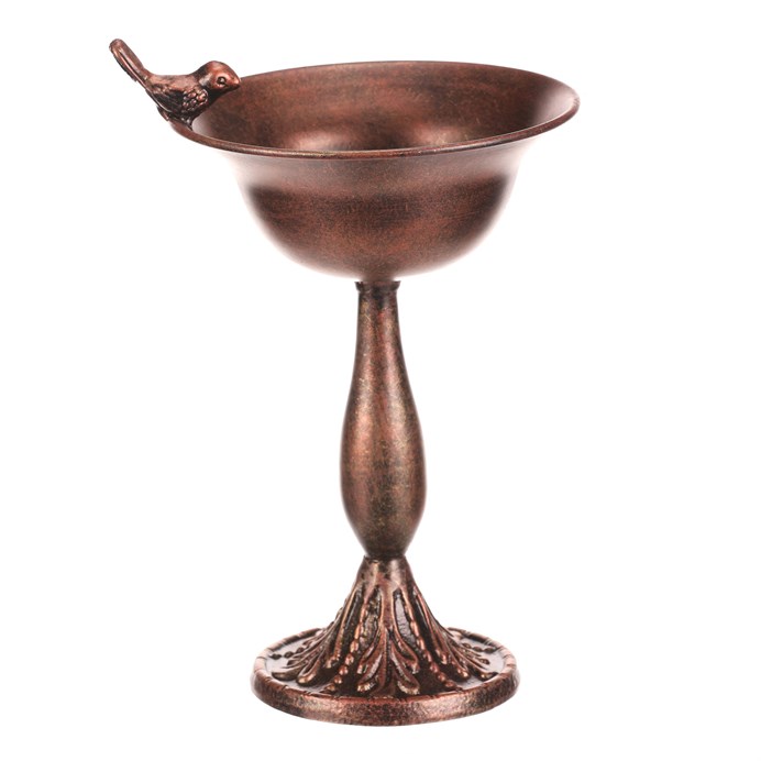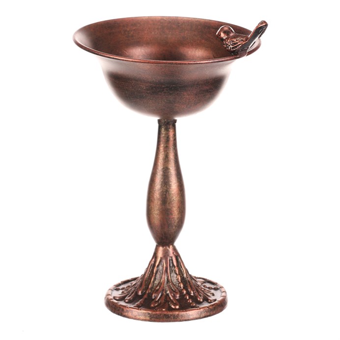 Dotaz na produktToto kovové pítko pro ptáčky v měděné barvě je nejen praktické, ale jedná se také o krásné zahradní doplnění. Miska na podstavci je zdobena malým pěvcem, který dodává pítku jemný detail. Stabilita této dekorace je zajištěna její hmotností a těžištěm ve spodní části. Perfektní pro umístění na zahradu, terasu, případně balkón, kde svým provedením bude dělat radost vám i všem ptáčkům, kteří na zahradu zavítají.