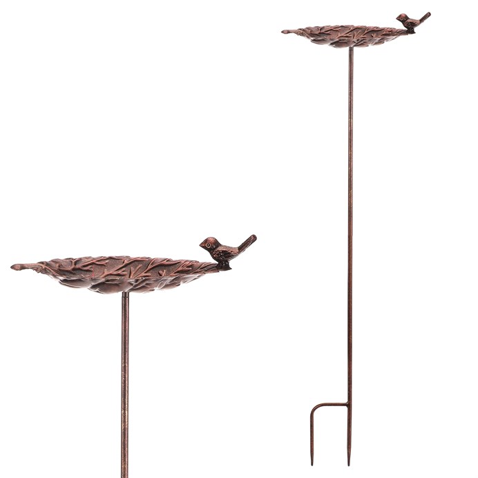 Dotaz na produktKovové krmítko/pítko v měděné barvě je praktickým i dekorativním doplňkem pro vaši zahradu. Miska ve tvaru listu umístěná navrchu je ozdobena jedním drobným pěvcem, který přidává předmětu jemný přírodní prvek. Díky zápichu ho snadno umístíte do záhonu, truhlíku nebo přímo do země, kde se stane ozdobou pro vás a vděčnou občerstvovací stanicí pro opeřené návštěvníky.