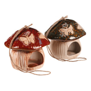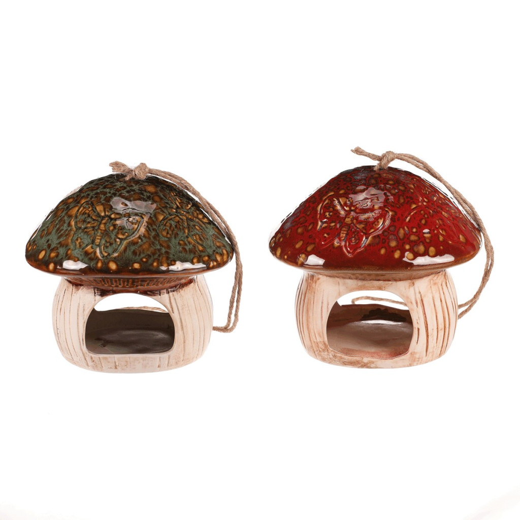 Dotaz na produkt Na splátky ještě dnesRozveselte svou zahradu keramickým krmítkem ve tvaru houby. Vybírat můžete ze dvou variant – se zeleným nebo červeným kloboukem, přičemž obě zdobí jemné motivy motýlů. Díky provázku jej snadno zavěsíte na větvičku strom či hřebík. Perfektní doplněk pro to, jak ptáčkům udělat radost a zároveň hezky dozdobit vaši zahradu.