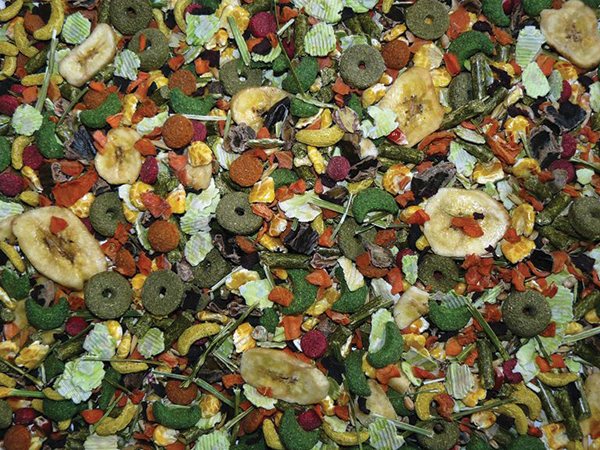 Výběrová krmná směs se spoustou sušené zeleniny a kvalitní vojtěšky.