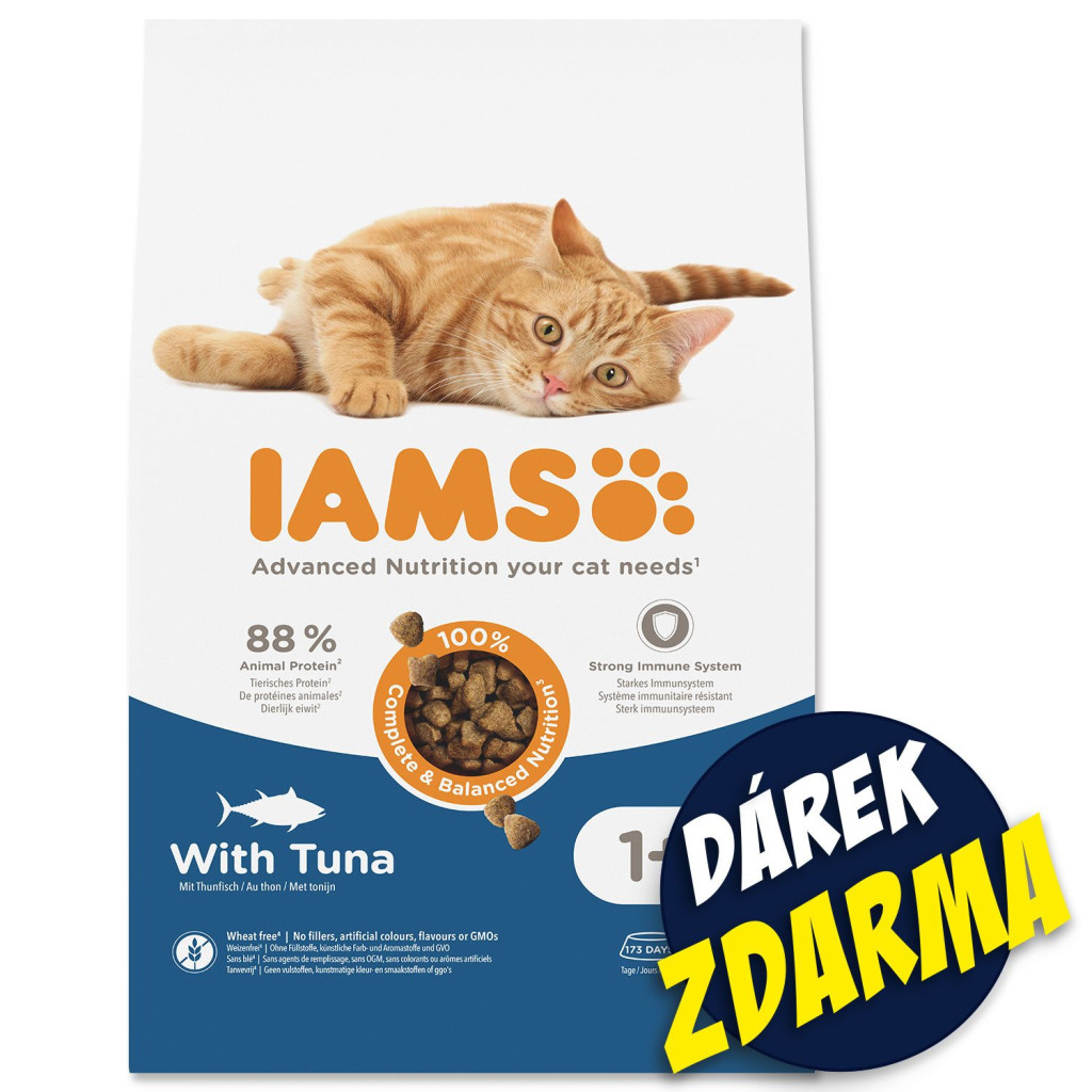 Krmivo IAMS Cat Adult Tuna 10kg + Kapsička IAMS (12x85g) ZDARMA