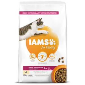 Dotaz na produktKrmivo IAMS for Vitality pro kočičí seniory je 100% kompletní a vyvážené, odborníky sestavené krmivo, které bude vašemu zvířeti chutnat a svědčit. Naše nová a vylepšená receptura pro kočičí seniory s čerstvým kuřecím masem je založena na kvalitních živočišných bílkovinách pečlivě vybraných tak, aby podporovaly sedm znaků zdravé vitality kočky. Aby byly kočky zdravé, aktivní a plné energie, obsahují naše lahodné receptury až 88 % kuřecího masa (z celkového obsahu bílkovin).