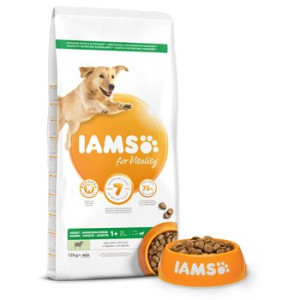 Dotaz na produktKrmivo IAMS for Vitality pro dospělé psy velkých plemen je 100% kompletní a vyvážené odborníky sestavené krmivo, které bude vašemu zvířeti chutnat a svědčit. Naše nová a vylepšená receptura pro dospělé psy s jehněčím masem je založena na kvalitních živočišných bílkovinách, které byly pečlivě vybrány, aby podporovaly sedm znaků zdravé vitality psa. Aby byl váš pes zdravý, aktivní a plný energie, obsahují naše lahodné receptury až 75 % živočišných bílkovin (z celkového obsahu bílkovin).
