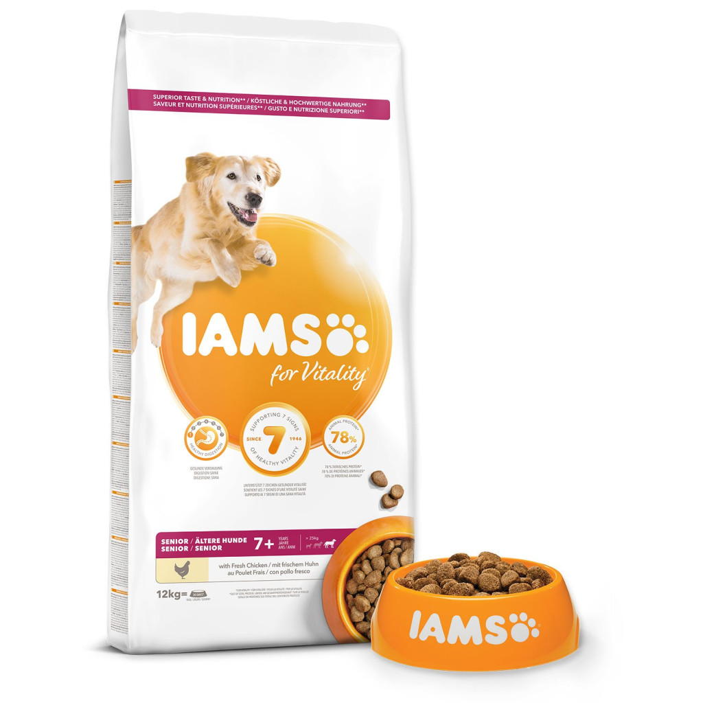 Dotaz na produktKrmivo IAMS for Vitality pro psí seniory velkých plemen je 100% kompletní a vyvážené, odborníky sestavené krmivo, které bude vašemu zvířeti chutnat a svědčit. Naše nová a vylepšená receptura pro psí seniory s čerstvým kuřecím masem je založena na pečlivě vybraných, kvalitních živočišných bílkovinách, které podporují sedm znaků zdravé vitality psa. Aby byl váš pes zdravý, aktivní a plný energie, obsahují naše lahodné receptury až 78 % živočišných bílkovin (z celkového obsahu bílkovin). Umožněte svému mazlíčkovi užívat si každý den naplno!