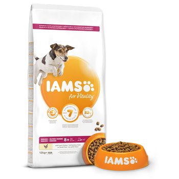 Dotaz na produktKrmivo IAMS for Vitality pro psí seniory malých a středních plemen je 100% kompletní a vyvážené, odborníky sestavené krmivo, které bude vašemu zvířeti chutnat a svědčit. Naše nová a vylepšená receptura pro psí seniory s čerstvým kuřecím masem je založena na pečlivě vybraných, kvalitních živočišných bílkovinách, které podporují sedm znaků zdravé vitality psa. Aby byl váš pes zdravý, aktivní a plný energie, obsahují naše lahodné receptury až 82 % živočišných bílkovin (z celkového obsahu bílkovin).