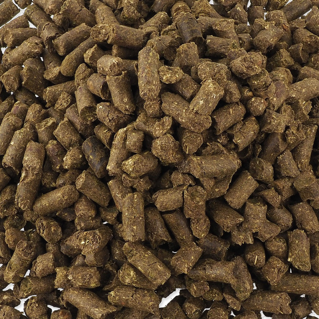 Složení: sušená vegetace rostoucí na trvalých pastvinách podhůří Alp, zelenina (sušená mrkev, sušený pastinák 0,8 %, sušená červená řepa, sušená petržel), hrachové vločky 2,5 %, vločky z bobu obecného, byliny (sušená máta peprná, sušená meduňka 0,4 %, sušené kopřivy, sušené pampelišky, sušený heřmánek), lněné semeno 0,6 %, černý kmín, semena fenyklu, sušená jablka 0,2 %.