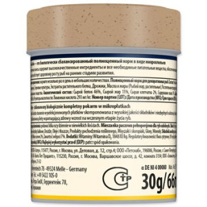 Složení: ryby a vedlejší výrobky z ryb, obiloviny, kvasnice, bílkovinné extrakty rostlinného původu, měkkýši a korýši, oleje a tuky, cukr, řasy.