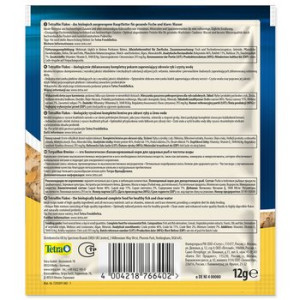 Složení: ryby a vedlejší výrobky z ryb, obiloviny, sušené krmné kvasnice, vedlejší výrobky rostlinného původu, měkkýši a korýši, oleje a tuky, řasy, cukr, lecitin.