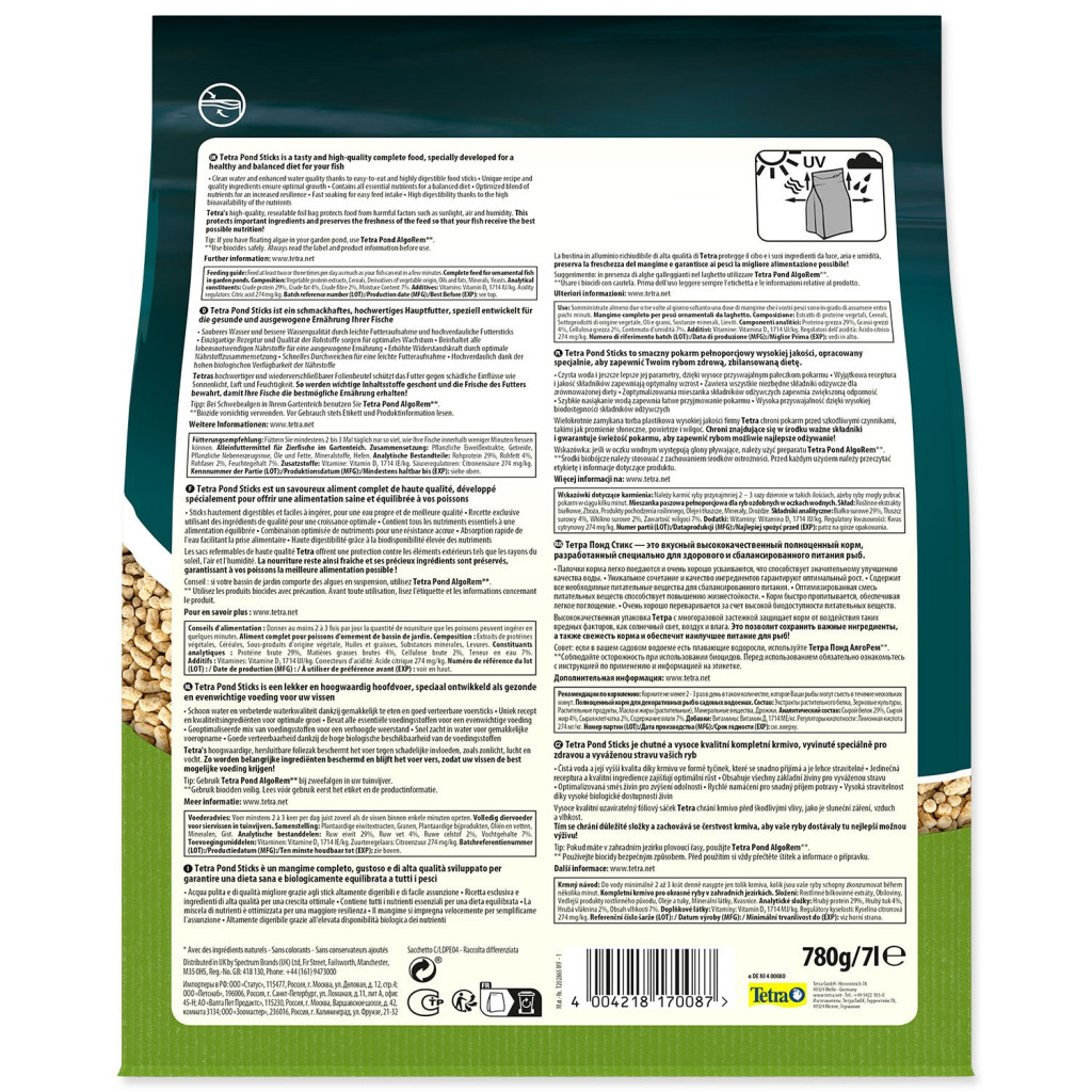 Krmný návod: krmte 2-3 x denně v malých dávkách, které mohou ryby spotřebovat během několika minut.