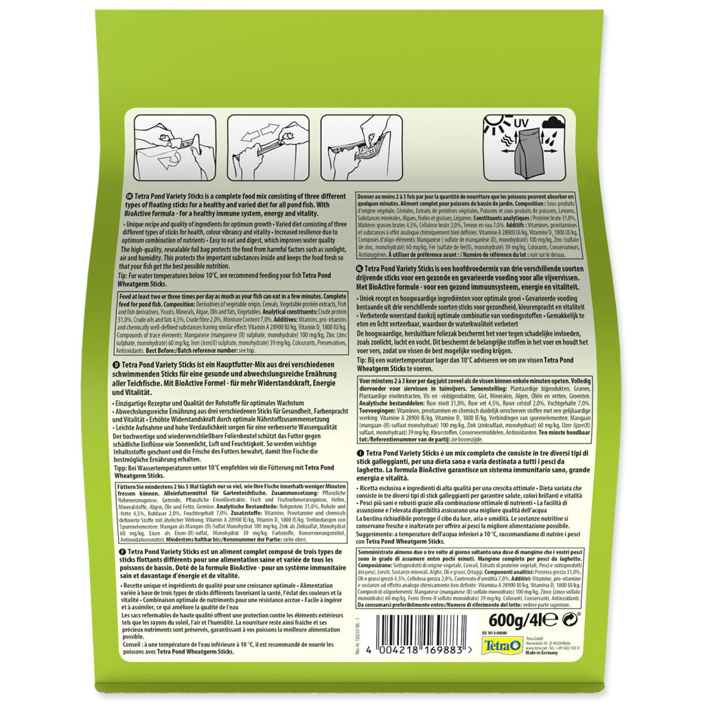 Kombinace třech různých druhů tyčinek zajišťuje optimálně vyváženou stravu pro jezerní a bazénové rybky. Krmivo obsahuje všechny důležité živiny, vitamíny a stopové prvky pro zdraví rybek a patentovanou Activ formuli pro udržení zdravého imunitního systému. Díky kvalitnímu, biologicky aktivnímu rozjasňovači barev budou mít ryby krásné barvy a intensivní lesk.