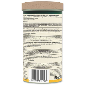 Proteiny 39 %, vlhkost 9 %, tuky 4,5 %, hrubé popeloviny 15 %, hrubá vláknina 2 %, vápník 3,3 %, vitamín A 29500 m.j./ kg, vitamín D3 1845 m.j./ kg, vitamín E (alfatokoferol) 100 mg / kg, L-askorbyl-2-polyfosforečnan (stabilizovaný vitamín C) 264 mg / kg.
