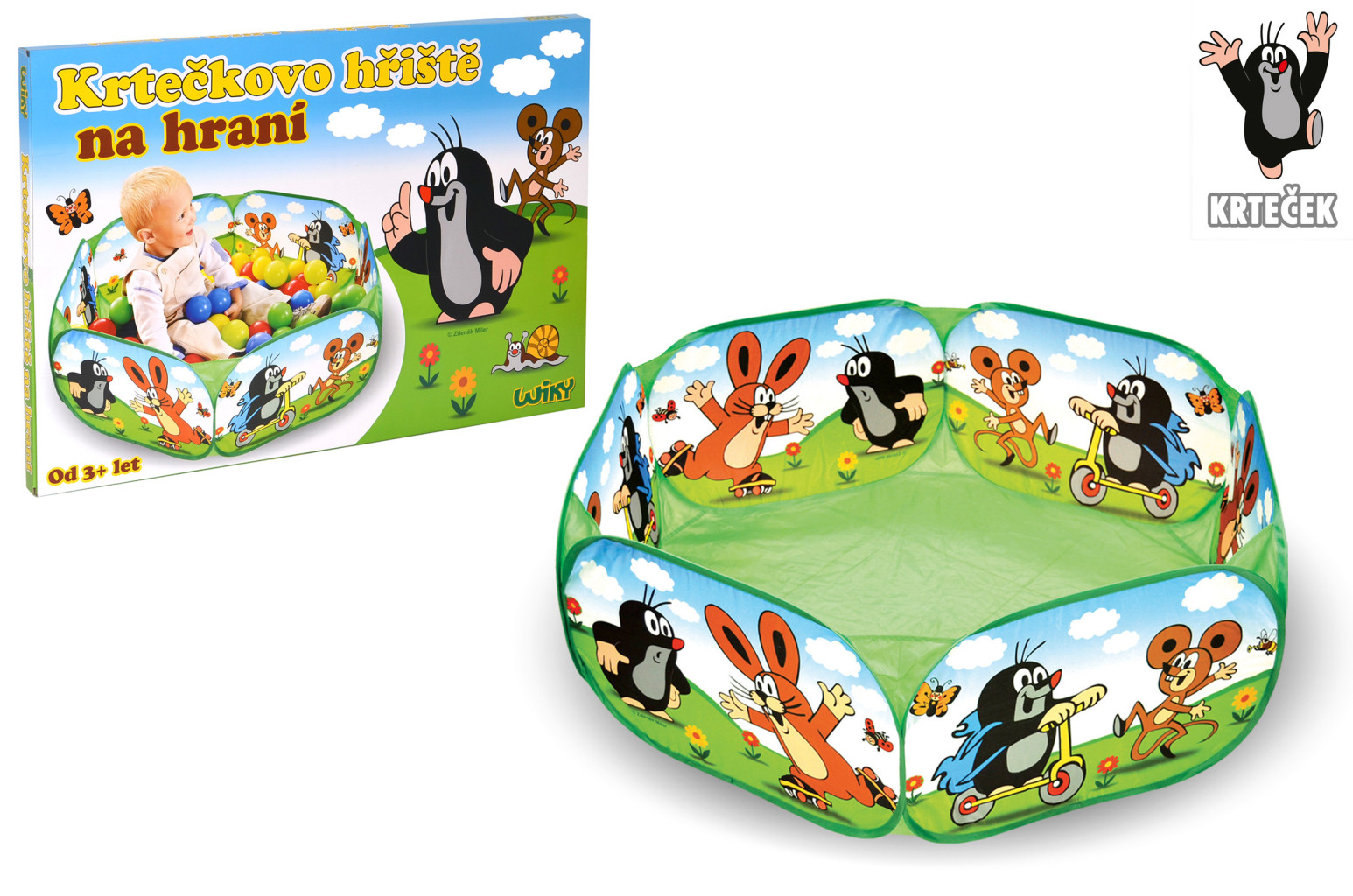 Dotaz na produktOhrádka pro děti s oblíbeným pohádkovým hrdinou - Krtečkem. Do Krtečkova hřiště můžete děti odložit s hračkami nebo ho naplnit pestrobarevnými balónky. Děti milují Krtečka a budou si rády hrát ve společnosti veselého kamaráda. balónky nejsou součástí, můžete je ale koupit zde: 122029. textilní skládací hřiště Rozměry: 120 x 104 x 36 cm Doporučený věk: od 3 let