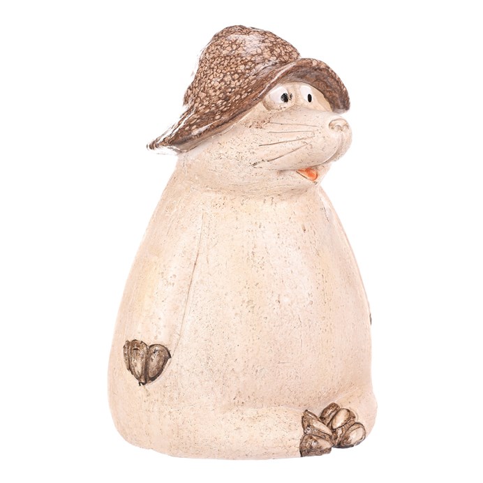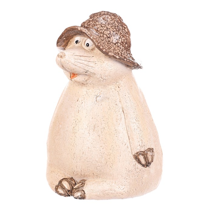 Dotaz na produkt Na splátky ještě dnesKrtek s kloboukem je veselá zahradní dekorace, která zaujme na první pohled. Béžové tělíčko, hnědý klobouk a roztomilý výraz s čumáčkem dělají z této figurky milého společníka mezi květinami nebo u vchodu do zahrady. Vyroben z odolného magnesia, skvěle doplní venkovní prostor a dodá mu veselou atmosféru.