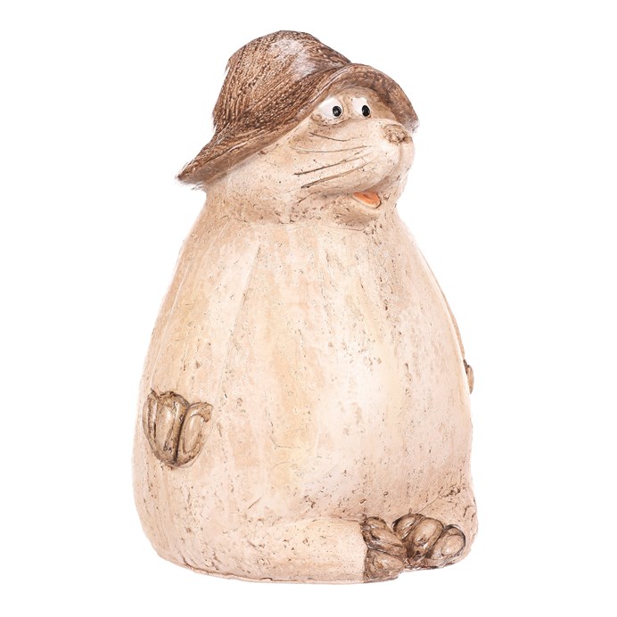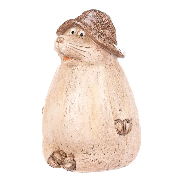 Dotaz na produkt Na splátky ještě dnesKrtek s kloboukem je veselá zahradní dekorace, která zaujme na první pohled. Béžové tělíčko, hnědý klobouk a roztomilý výraz s čumáčkem dělají z této figurky milého společníka mezi květinami nebo u vchodu do zahrady. Vyroben z odolného magnesia, skvěle doplní venkovní prostor a dodá mu veselou atmosféru.
