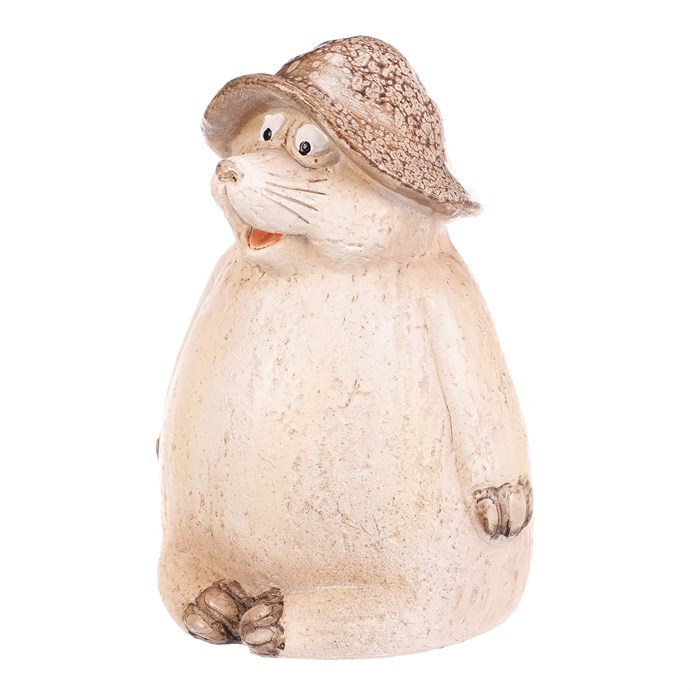 Dotaz na produkt Na splátky ještě dnesKrtek s kloboukem je veselá zahradní dekorace, která zaujme na první pohled. Béžové tělíčko, hnědý klobouk a roztomilý výraz s čumáčkem dělají z této figurky milého společníka mezi květinami nebo u vchodu do zahrady. Vyroben z odolného magnesia, skvěle doplní venkovní prostor a dodá mu veselou atmosféru.