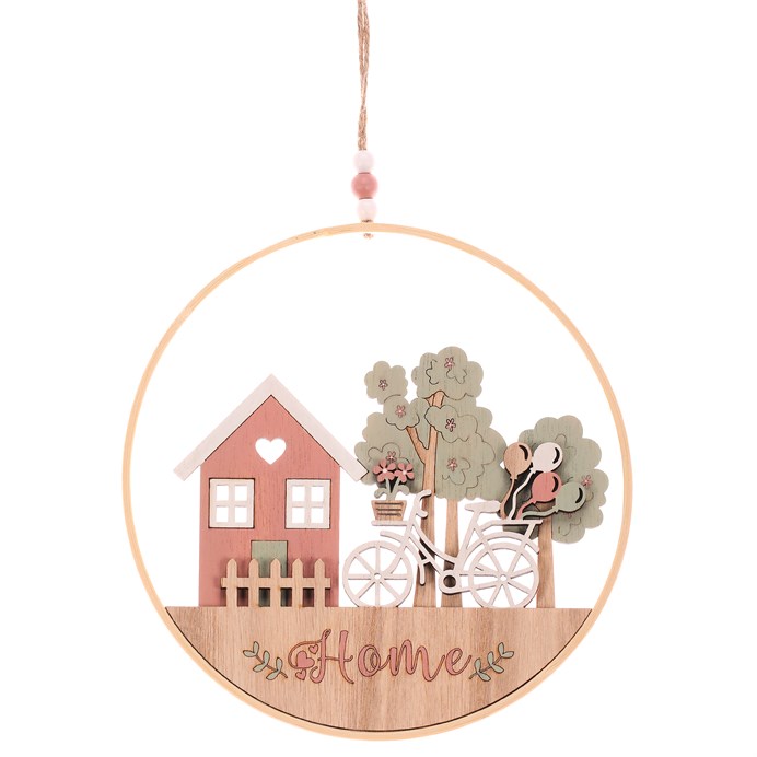 Dotaz na produktTento pestrobarevný závěsný kruh je dokonalým způsobem, jak vnést do vašeho domova veselou atmosféru. S motivy domečku, stromů a vyzdobeného jízdního kola vytváří útulný pocit, který vás každý den přenese do krásného venkovského prostředí. Nápis "HOME" jasně vyjadřuje, co je pro vás nejdůležitější. Závěsný kruh můžete umístit do obývacího pokoje, kuchyně nebo na terasu a obohatit tak prostor o jedinečný prvek, který potěší vás i vaše hosty.